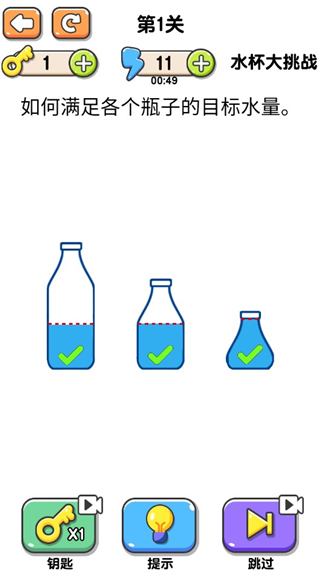 2、试着用最少的资源完成挑战,当遇到难题时还有提示可以帮助你度过难关,试试不一样的通关方法。