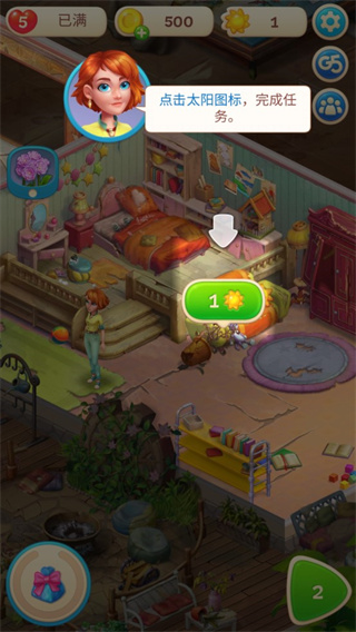 1、首先我们进入夏威夷三消狂热游戏,在刚进入游戏时我们的房子非常的乱,我们需要把它进行翻新和整理;