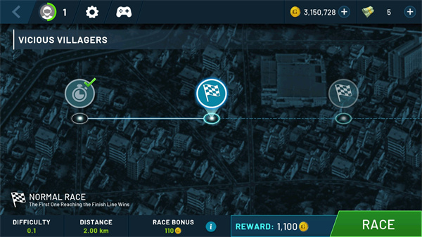 3、拥有4个不同团伙头目和数十个关卡的赛车冒险