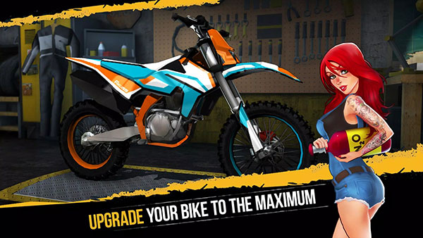 5、通过游戏关卡中的获胜奖励,你可以在主界面下,选择改装你的摩托动力,增加摩托车的平衡动力和输出威力,这对于玩家赢取比赛起到十分重要的作用。