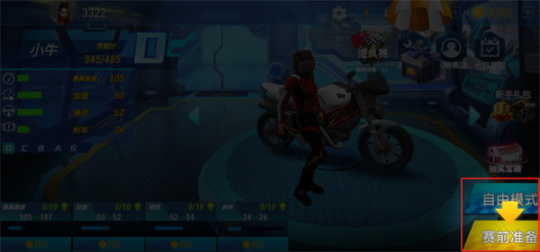 1、自由创建角色,挑选自己的摩托车,过完新手任务,就可以迅速的加入比赛当中。