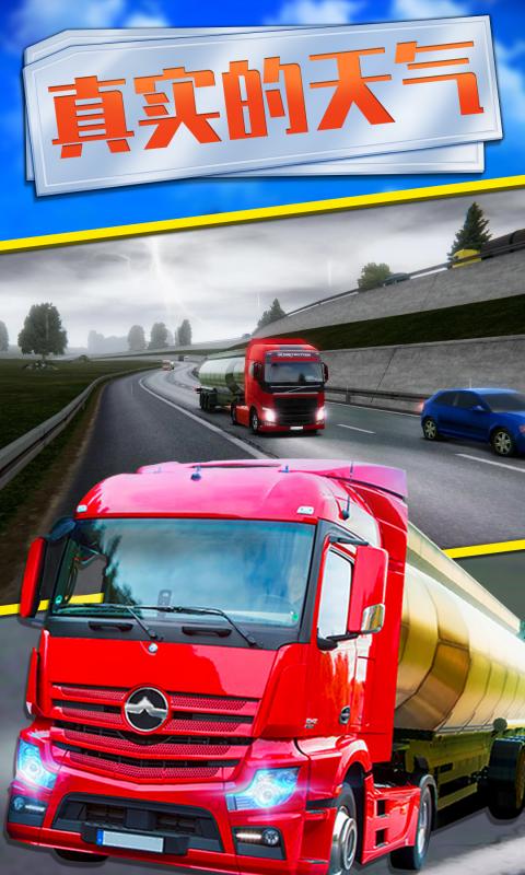 连天气环境都细致出来了,昼夜交替,倾盆大雨,都有可能在你的旅途中出现。还值得一说的就是,虚拟模拟大卡车的方向盘、油门和制动,在手机端都可以体验真实驾驶卡车的感觉,玩起来真的非常的带感。