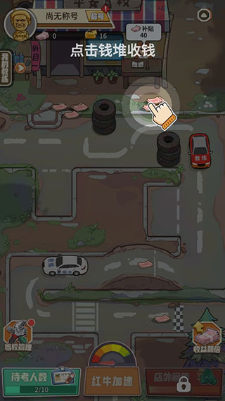 2、来到游戏剧情,游戏讲述的是一个人想去学车,考证,没想到居然被骗了,然后就想着开一家靠谱的驾校,点击屏幕继续哦。