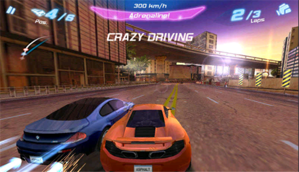 狂野飙车6是一款非常不错且画面极佳的手机赛车竞速游戏,同时也是该系列游戏目前最新的版本,相比于前作添加更多的地图,游戏中你将会有多达42种汽车可供选择,包括法拉利、兰博基尼、阿斯顿马丁、杜卡迪等世界最顶级的赛车。并且在游戏中你将建立一个自己的3d车库集合,你还可以对你的汽车进行各种个性化的调整,比如选择各种图案等,游戏中将拥有12个不同的赛道,包括从洛杉矶到东京到巴哈马已经其他更多美丽的地方,而游戏的高清画质几乎可以说是毫无瑕疵的。本作采用Retina显示技术,所有的赛车与场景都栩栩如生的立在玩家面前。在每一个城市狂飙,就好像置身于真正的大都市之间,那些山脉、海洋、高楼、夕阳、蓝天,一切的存在物都刻画的相当细腻生动,而且色彩丰富明亮!而狂野飙车6:火线追击破解版在操作方面采用了两种操作方式相结合的操控,重力感应控制赛车的左右方向,点击屏幕左下方可以刹车减速,屏幕右下方可以喷射加速,在屏幕上方的正中央,显示了当前的车速以及氮气情况,当氮气容量超过左边的横条时可点击屏幕使用氮气进行加速,非常简单!此外,值得一提的是本作支持最多6位玩家的联机对战。