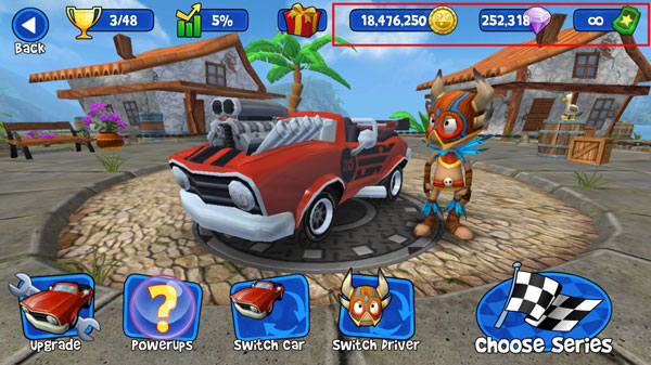 使用您的金币收集和一个车库充满了独特的汽车,从怪物卡车肌肉车升级到月球车!