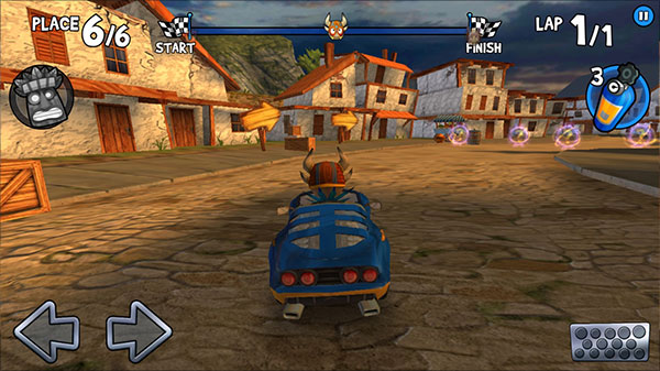 4、打造了27款不同功能的道具,玩家可以自由地在比赛中使用,而且每一个道具都拥有不俗的效果,即使是玩家的车技不行如果道具使用恰当也能轻松的夺得冠军。