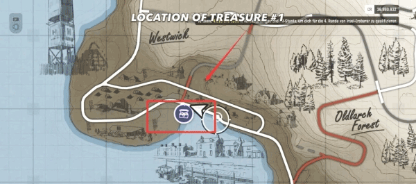 1、进入世界地图,寻找财富岛宝藏2,选择获取财富岛宝藏2路线,再查看比赛用的车型。