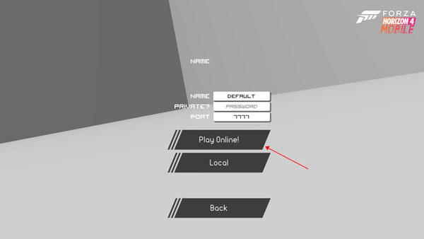 1、首先打开地平线4官方正版手机版,进入后如下如所示,点击“play online”进入游戏。
