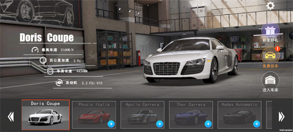 2、我们可以在游戏里面自由的选择喜欢的赛车来展开竞速冒险。