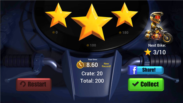 审判车神游戏最新版是一款画面简约且极具挑战性的赛车竞速类型游戏。游戏采用Q版的人物形象设计,可爱炫酷,玩家需要在游戏中驾驶车辆在道路上前进,完成挑战,途中会经历各种各样的陷阱,而你则需要注意躲避道路上的陷阱,道路上还会有金币,金币可用来购买新的车辆,也可以为你的车辆升级引擎、轮胎、悬架、旋转、汽油动力、四驱等。在关卡上有40多个极具挑战性的关卡,等待着你来挑战,场景上有乡村、森林、火山、沙漠、高山和洞穴供你选择,还有6个无极限地图供您驾车反复游戏让玩家们一路嗨到底。不仅如此,审判车神游戏还有着精致的画面、多样超清的游戏场景,各种各样的摩托车任你使用,指尖微操,刺激的赛车手游体验,感兴趣的小伙伴不妨下载体验试试。