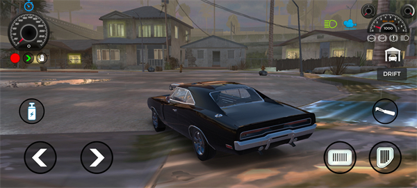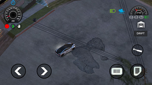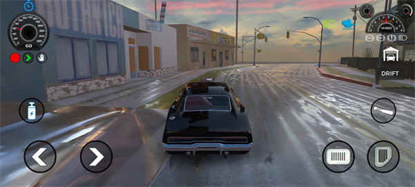 6、进入游戏后,左边的两个键位是方向控制键位,右下角两个键位是刹车和行驶车辆的键位;