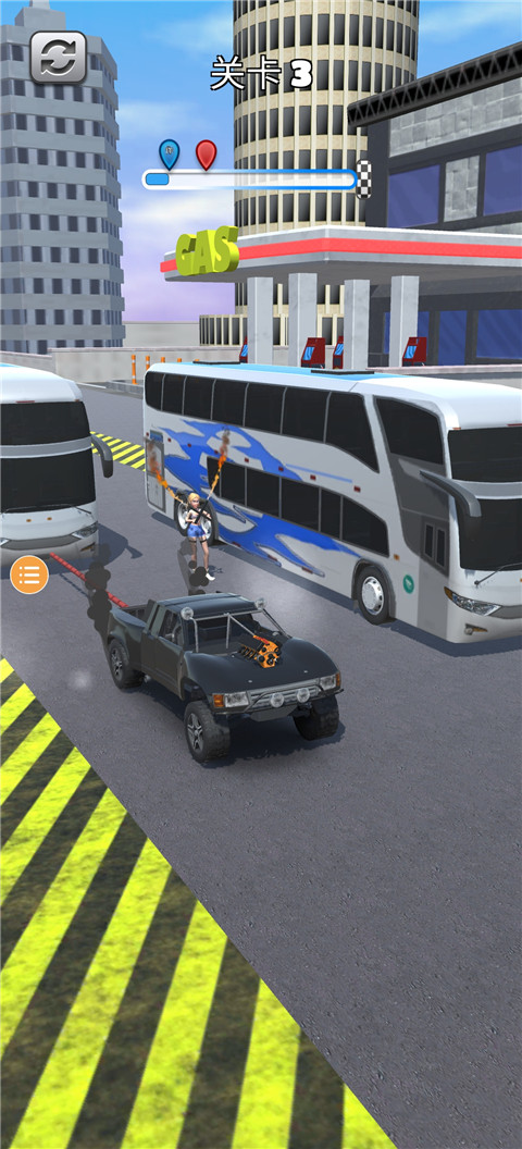 1、游戏玩法很简单,玩家将驾驶一辆车拉着后面的大车前进,要注意力度,一旦用力过大绳子容易断,最好拉一下缓一下,注意力度