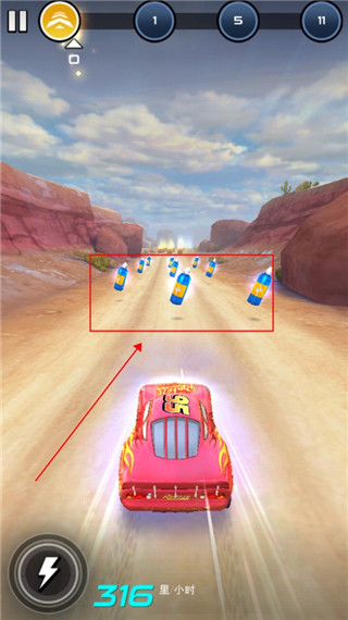 4、遇到这种加速带,我们需要用手指向上滑动就能够获得加速