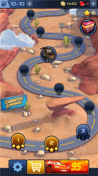 7、精美的3D画面,重现了《赛车总动员》电影中的角色、建筑和地标,加入了可爱有趣的动画效果