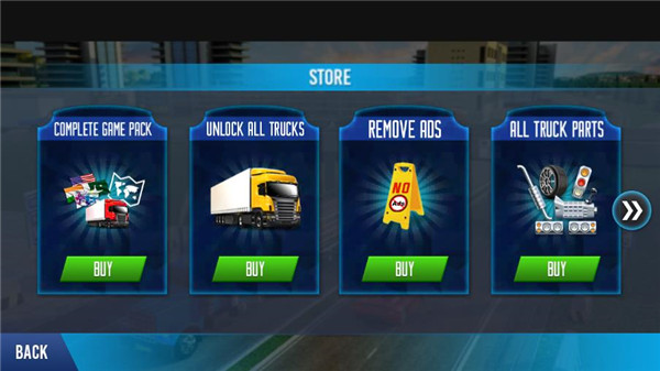 1、点击商店,可以购买各种道具和卡车。