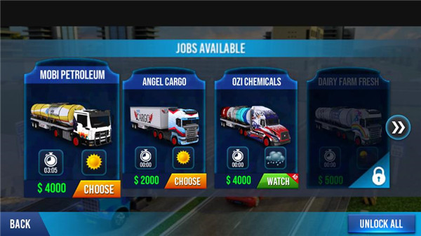 3、选择不同类型的卡车,越长的卡车操作起来也越难。