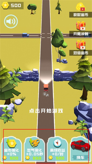 2、在游戏开始前,我们可以利用自身的金币来购买各种道具,有金币强化,怒气强化、离线收益等等。