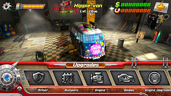 5、丰富的升级系统:车体、引擎、保险杠等等。