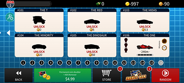 在这款游戏中,车的种类非常多,但都能够使用金币、钞票、代币解锁,最后一辆车就需要90代币解锁。