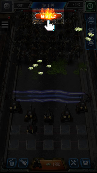 使用增强火力x2让武器提升速度,使用金币收入增加x2使收入快速增加,阻止僵尸进攻。