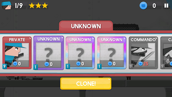 5、选择你自己的单位和不同的克隆,从迷你枪挥舞士兵喷气包或罐设计你的军队。