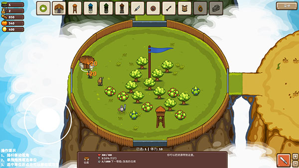 6、我们的初始领地只有一块,需要先点击左上方的图标【建造仓库】才能让工人们开始劳动。