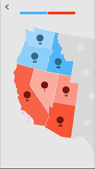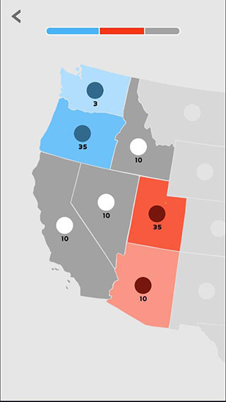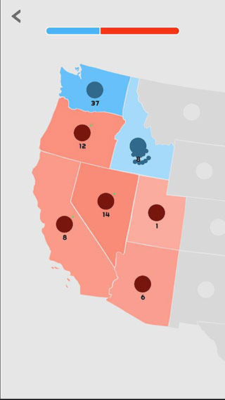 10、后期的关卡会增加更多的势力,每个颜色代表不同势力,也都是各自为战,这就使得游戏更加具有策略性,你不再是面对一个敌人,而是要在这犬牙交错的形势中周旋。